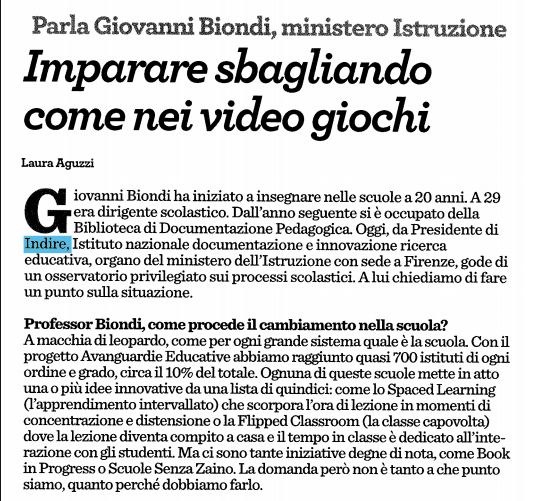 Il settimanale “Origami” de La Stampa ha pubblicato nel numero di giovedì 14 dicembre un’intervista a Giovanni Biondi, Presidente dell’Indire, dedicata alle trasformazioni in corso nel sistema scolastico.