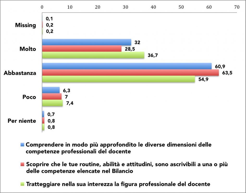 Figura 1 – Questionario sull’attività online. Risposte alla seguente domanda: “L’attività sul Bilancio iniziale delle competenze ti ha aiutato a: …”