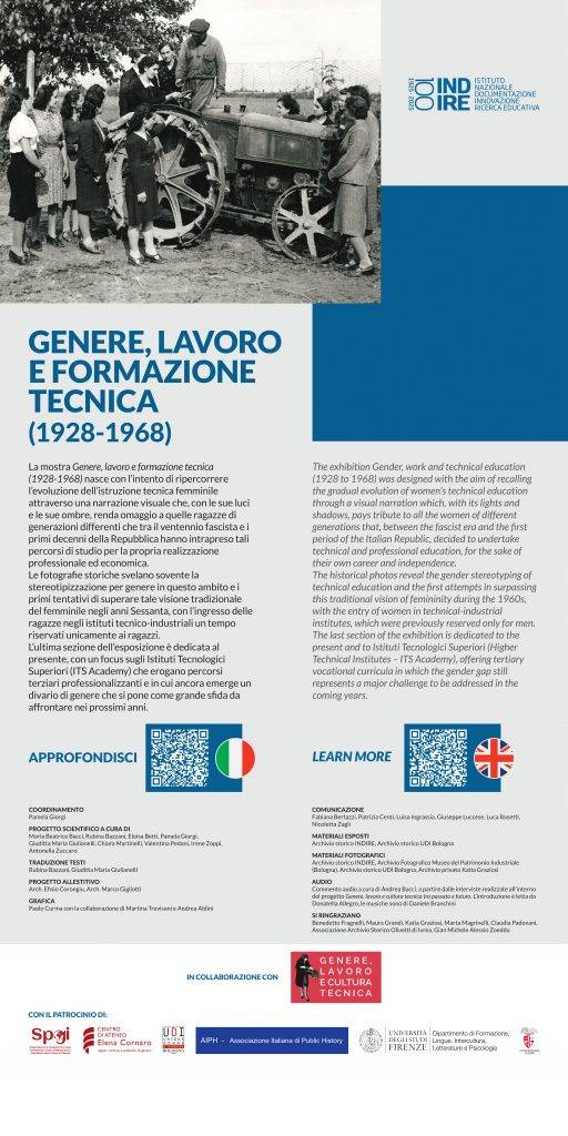 Il 10 ottobre, a Firenze, presso la Galleria delle Carrozze di Palazzo Medici Riccardi (via Cavour, 3), INDIRE – Istituto Nazionale di Documentazione, Innovazione e Ricerca Educativa – inaugura la mostra Genere, lavoro e formazione tecnica (1928 – 1968) che sarà possibile visitare fino al 19 ottobre.