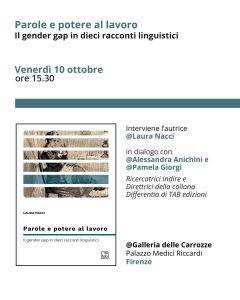 Venerdì 10 ottobre (ore 15:30) presso Palazzo Medici Riccardi a Firenze, si tiene la presentazione del libro Parole e potere al lavoro.Il gender gap in dieci racconti linguistici.