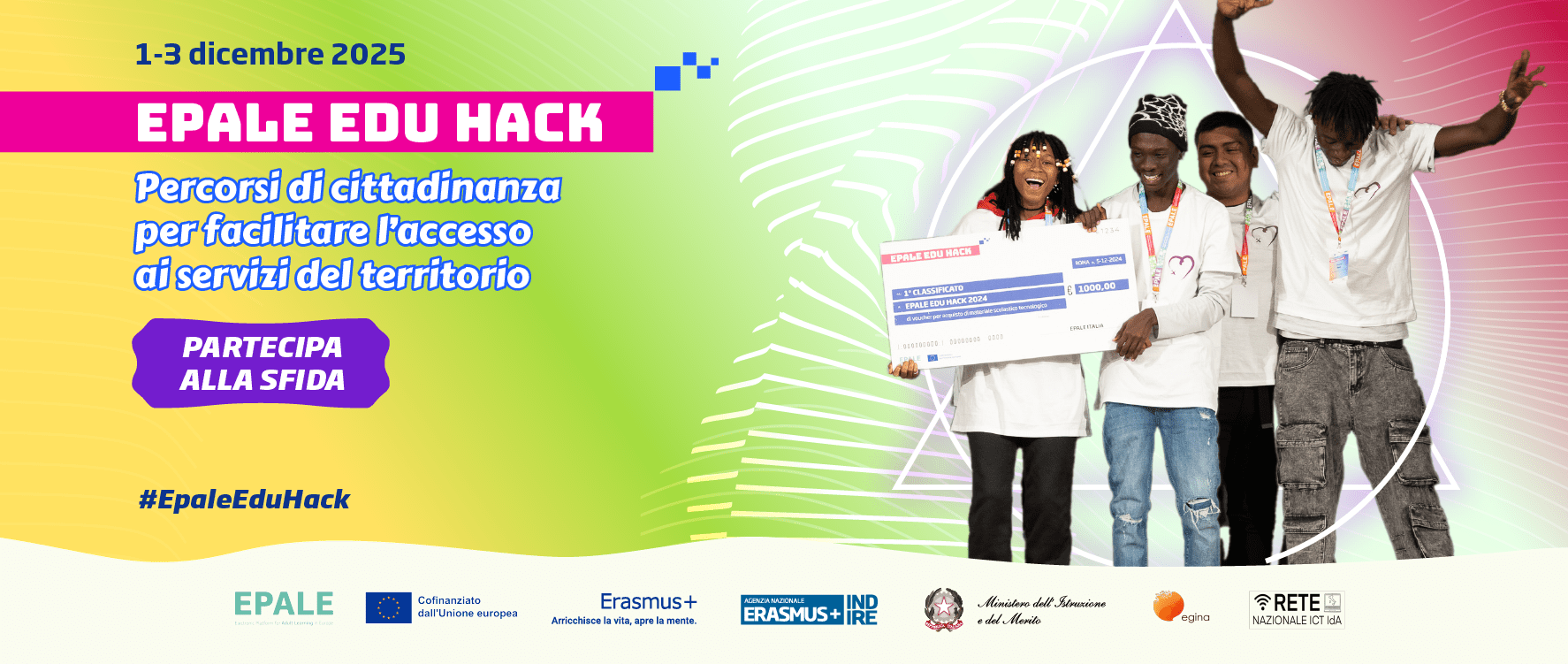 Per conoscere tutti i dettagli dell’evento finale, il calendario delle fasi di formazione, i premi in palio e il regolamento per partecipare a EPALE Edu Hack 2025 leggi l’articolo sul sito EPALE: