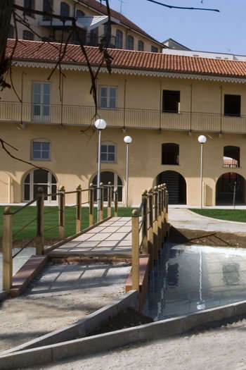 In accordo con le scelte emerse dalla progettazione partecipata il giardino è stato concepito come una ‘aula verde’ attrezzata con orto, alberi da frutta, stagno, anfiteatro e piastre gioco.