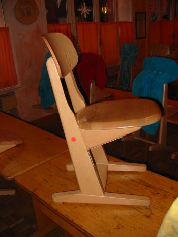In ogni aula sono sistemati un attaccapanni per le tuniche dell’euritmia e un mobile speciale, costruito su misura per alloggiare e far asciugare i disegni.