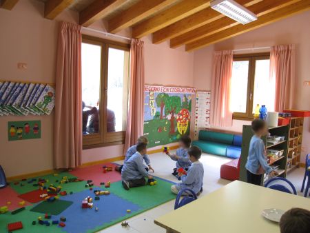Gli spazi della scuola dell’infanzia occupano la parte esposta a sud est dell’edificio.