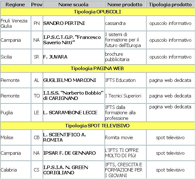 Il Concorso Nazionale IFTS “I Tecnici Superiori nella società della conoscenza”, bandito dal MIUR per l’ideazione, la progettazione e la realizzazione di un prodotto informativo in tema di Istruzione e Formazione Tecnica Superiore, è giunto alle battute finali.