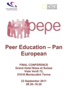 Il prossimo 23 settembre a Montecatini Terme (PT) si terrà la Conferenza internazionale sul progetto PEPE (Peer Education - Pan European).