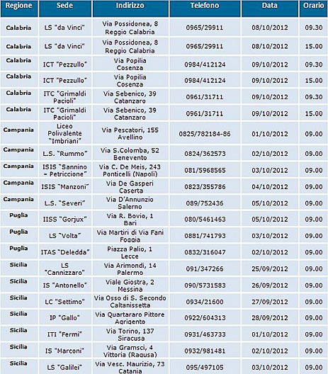 Questo il calendario degli incontri di presentazione dei corsi di formazione nazionale 2012/2013 suddiviso per regione: