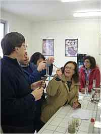 “Ho visto la femmina di guppy, quella più grande, nascondersi sotto il filtro dell’acquario e restare immobile. Ho detto alla signora Maria: “Qui «gatta ci cova»…la vedo troppo immobile, che voglia partorire? ” ma, poi, vista l’inesperienza nel campo e il tempo tiranno che rimaneva perché dovevo entrare in classe, sono andata via lasciando gli eventi al caso…e infatti…Sono nati!!! Ero in classe e la signora Anna ha bussato alla porta della classe e, tutta trafelata, ha detto:” Presto, presto, stanno nascendo, prendiamo i nastri rosa e azzurri e corriamo”. Non me lo sono fatto ripetere due volte che ero già al piano di sopra, in primo piano davanti all’acquario a constatare di persona che effettivamente eravamo diventati tutti “zii”. La nascita non sono riuscita a vederla! Comunque eravamo tutti lì, alunni, docenti e personale ATA, estasiati dalla nascita e dal perpetuarsi della vita. Purtroppo sono sopravvissuti soltanto tre avannotti perché gli altri erano già stati divorati dalla madre. Pazienza! I tre sono salvi perché si sono rifugiati nel filtro. Li abbiamo presi, con l’aiuto della tutor e messi in un contenitore a parte; nel pomeriggio, la tutor porterà la nursery per sistemarli meglio. Quando sono rientrata in classe, i ragazzi mi hanno chiesto del perché la madre divora i propri piccoli: domanda non facile da rispondere! E non sto a riferire i commenti dei ragazzi su questa madre “divoratrice e cattiva” ( queste sono state le parole più gentili che hanno detto ). Poiché avevamo parlato dell’evoluzionismo e di Darwin proprio in questi giorni, ho colto l’occasione per ripetere i concetti della selezione naturale, della competizione dello spazio e del cibo e che sopravvivranno solo i più forti e, direi, i più furbi e veloci a nascondersi. Dalla pratica alla teoria...e ogni giorno la mia meraviglia aumenta insieme allo sguardo, alle domande e allo stupore dei miei ragazzi. L'anno scolastico prossimo comincerò prima questa ed altre esperienze! I ragazzi si sono già prenotati per avere il loro avannotto e, mediante sorteggio, li daremo "in adozione".A presto con altre notizie da condividere. Ciao”.